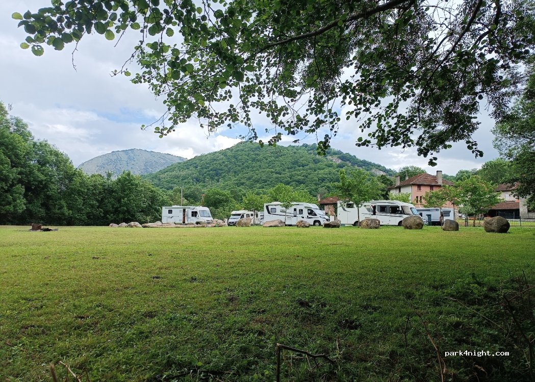 Très bel endroit : chacun a son coin d herbe ombragé et les emplacements sont vastes . Quand le stationnement est gratuit,quoi de plus normal que de recharger le véhicule en eau pour 5 euros ! Un bon petit resto et de jolies randonnées à proximité : le bonheur ! Merci à la municipalité !