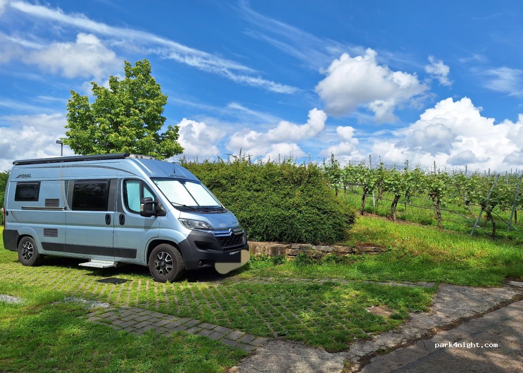 Vorherige Reservierung laut Besitzer erwünscht! Bitte unbedingt bei Ankunft erst auf den Parkplatz im Hof fahren und an der Rezeption melden. Stellplatz wird zugewiesen. Sanitäranlagen modern und sehr sauber, absolut top. Ruhige Nacht direkt neben den Weinbergen, die zum Spazierengehen oder Radfahren einladen. Morgens Brötchen- oder Frühstücksservice möglich. Restaurant konnten wir leider nicht testen, weil der Koch im Urlaub war. Wir kommen gern wieder.