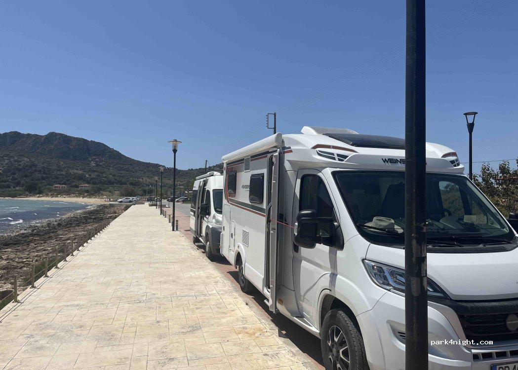ottimo parcheggio tranquillo sul mare con spiaggia e taverna docce sulla spiaggia sorvegliata anche con ottimo soccorso medico. mare e panorama molto belli. consigliato. vietato ai camper solo ad agosto..wifi libera ombrellone e lettini 10 euro