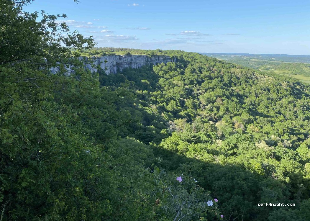 Magnifique vue sur les falaises et la vallée au petit matin, endroit très calme pour y dormir..