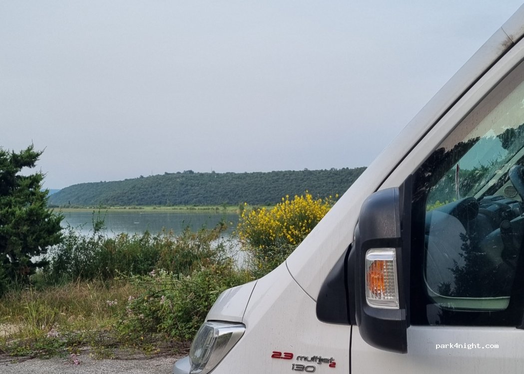 Благодаря за споделеното място. Не успяхме да намерим никакво свободно място в Пиран и се озовахме на тази точка. Споделихме мястото с още два кемпера снощи.
