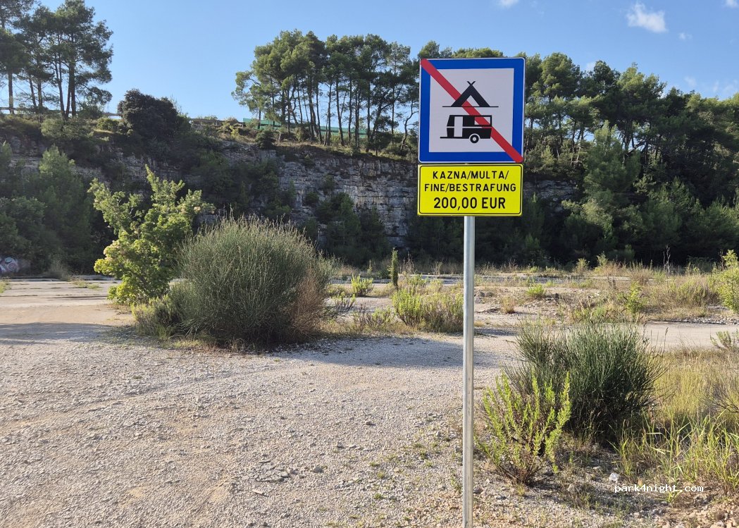 J'y ai passé 2 nuits à mi-chemin entre Porec et Novigrad. Propre une poubelle à dispo la 1ere nuit nous étions 3 véhicules, la 2eme toute seule La route proche ne s'entend pas