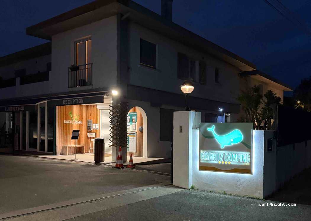 Attention le parking du camping est en face. Super accueil. Supérette, piscine neuve. Sanitaire très propre avec papier toilette, savon main, sèche cheveux et espace bébé. Emplacement ombragé. Arrêt de bus à la sortie du camping pour aller sur Biarritz (2,20 € pour 24h). Bus toutes les heures jusqu’à 5h du matin. 65€ pour un van pour 2 adultes + 2 enfants avec électricité. Vigile la nuit donc pas de bruit dans le camping.