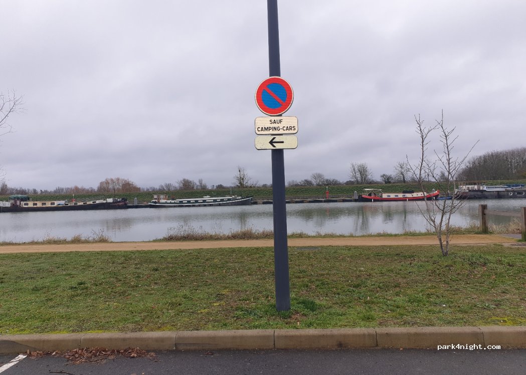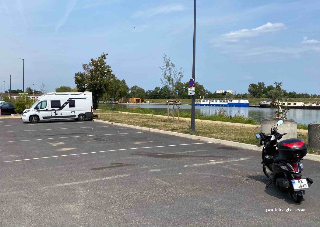 Spécialement réservé aux camping-cars, 6 places sur sol plat très bien stabilisé. Bar-restaurant La Marine juste à côté. Vue sur le cul-de-sac du canal et les péniches. Aucun service. A 1 km du centre ville.