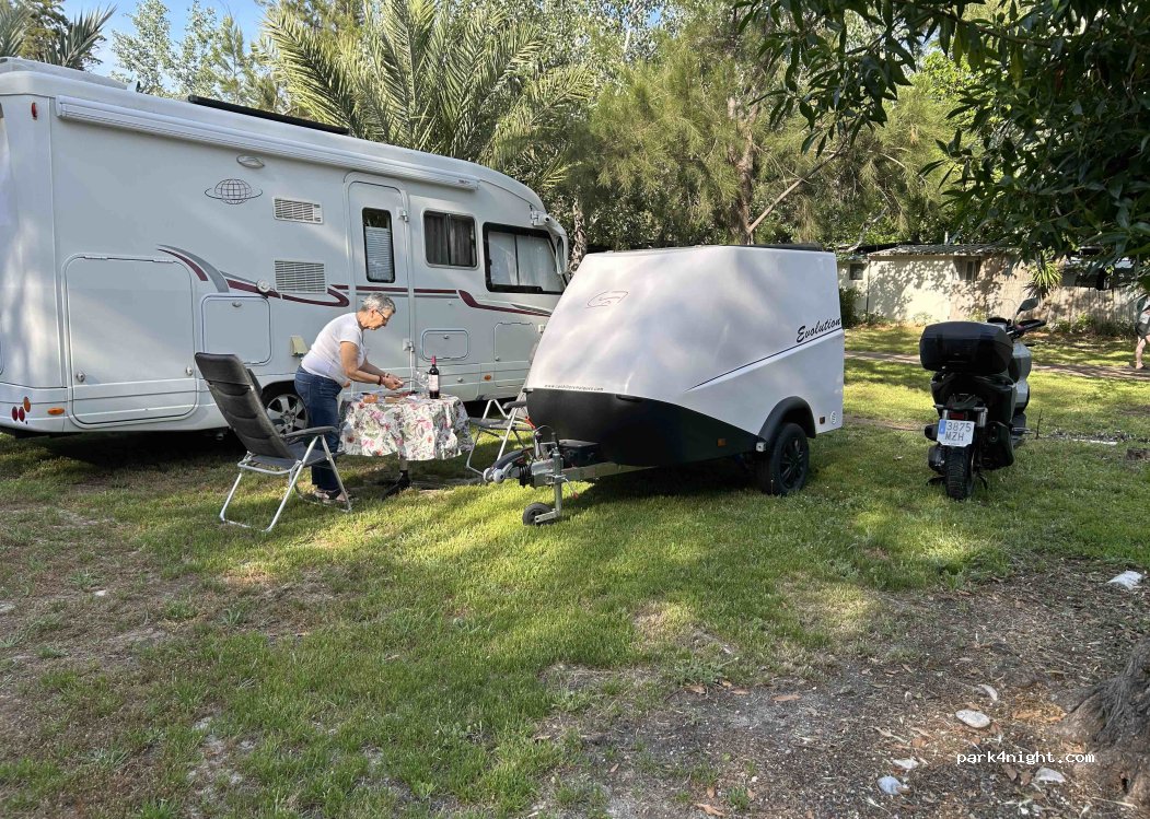 Bellissimo campeggio nel verde con tanti alberi e animali (pavoni, gatti, pecorelle). Accesso diretto alla spiaggia, molto tranquillo. Posto perfetto per il relax. Scarico wc comodo e pulito. Scarico grigie un po’ complicato per manovre. Servizi buoni, personale gentile. In bassa stagione per un camper furgonato in due abbiamo pagato 13,50 euro, ottimo prezzo.