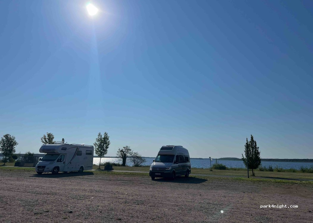Großer Parkplatz mit Blick auf den großen Goitzschesee. Große Wiese am See. Schwimmen ist auch möglich. Hörbare Straße, nachts ruhig. Bezahlen per App oder am Automaten. Es gibt ein Tages Ticket, das gilt bis 0:00 Uhr und ein 24 Std. Ticket welches genau ab Einfahrt gilt. Es gibt keine Schranke mehr hier wird nun mit Videokamera gearbeitet.
