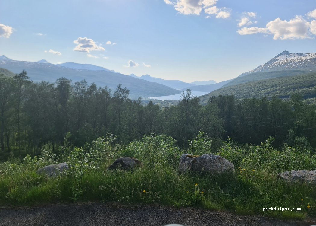 Parking below the E6 with some traffic noise. The view makes up for it! Good place if you do not want to be right on the street