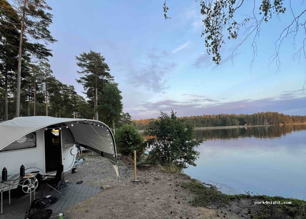 Der Platz ist direkt am Wasser und die Stellplätze sind einigermaßen eben! Die Straße geht genau durch den Campingplatz, aber mit dem Blick auf den See kann man die Geräusche ausblenden:) Der Betreiber kann kaum Englisch, aber war sehr freundlich! Preis: 180sek ohne Strom direkt am Wasser. Sanitär, alt aber sauber und gepflegt. Wir würden für eine Übernachtung auf jeden Fall wiederkommen.