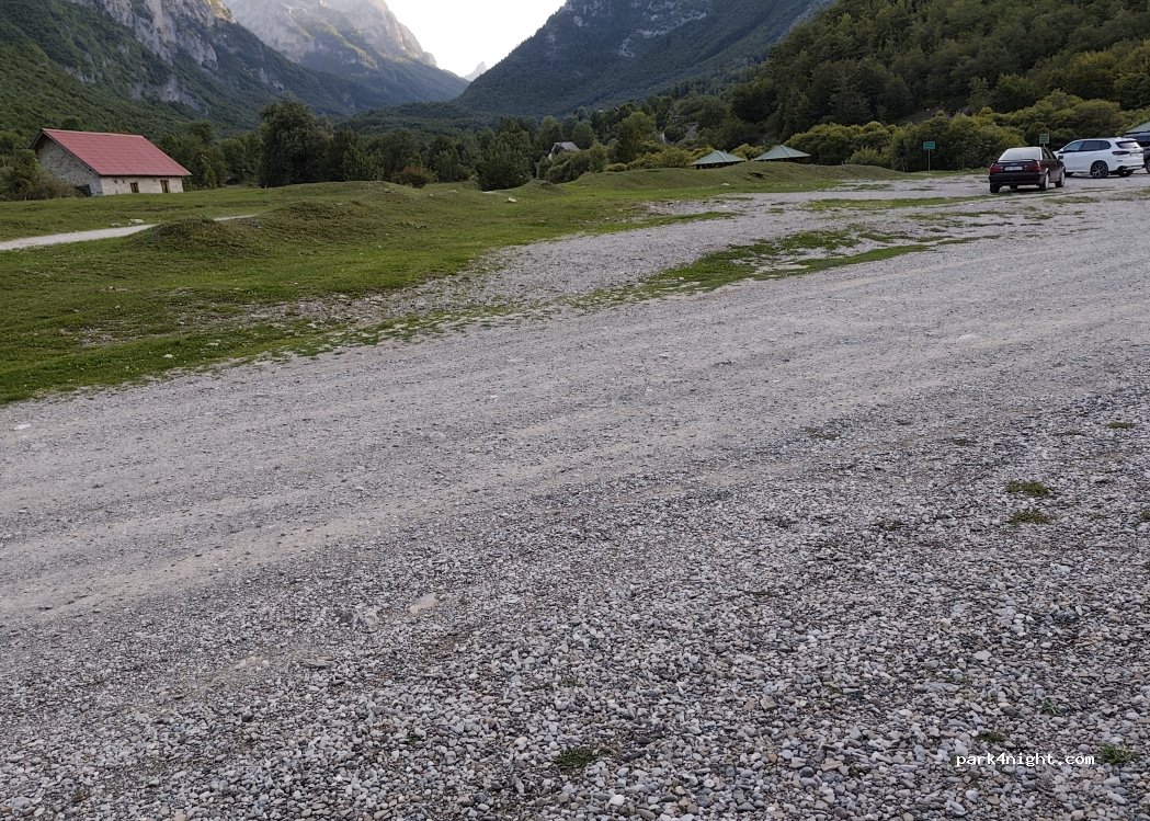 Nice spot to sleep. Although saturday evening mid july, the place is quite. 1 other van and a few hikers with tents. no much sound coming from the restaurant nearby. a few cars parked. good spot to start hiking in the NP (maje rosit, roman, valley of the lakes, peaks of the balkans trail, etc.). river close by but really cold!