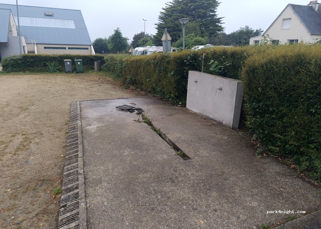 L'aire est pratique pour y passer la nuit et visiter l'enclos paroissial. Sinon il est en pente, le revetement en petits cailloux de calcaire la rend vite boueuse lors de pluie. Les services sont gratuits mais peu pratiques et non entretenus