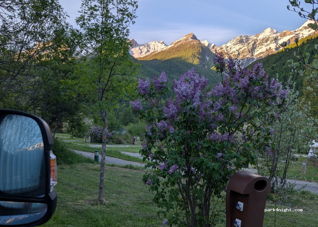 Réveil avec jolie vue sur la montagne, camping très sympa, parfait pour une étape vers le sud