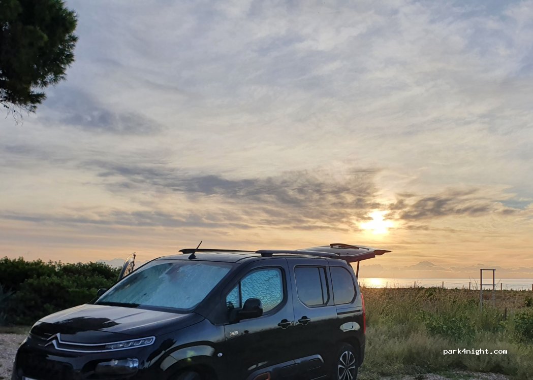 Blaues Meer, angenehmer Sandstrand, Klo sauber, Duschen vorhanden, Strandcafé mit sehr guten Snacks von Salat bis gegrillten Sardellen & Mülltrennung vor Ort möglich. Sehr gut für eine Nacht. Nachts kamen einige Leute vom Feiern zurück, da wacht man evtl kurz auf, sonst keine Einwände