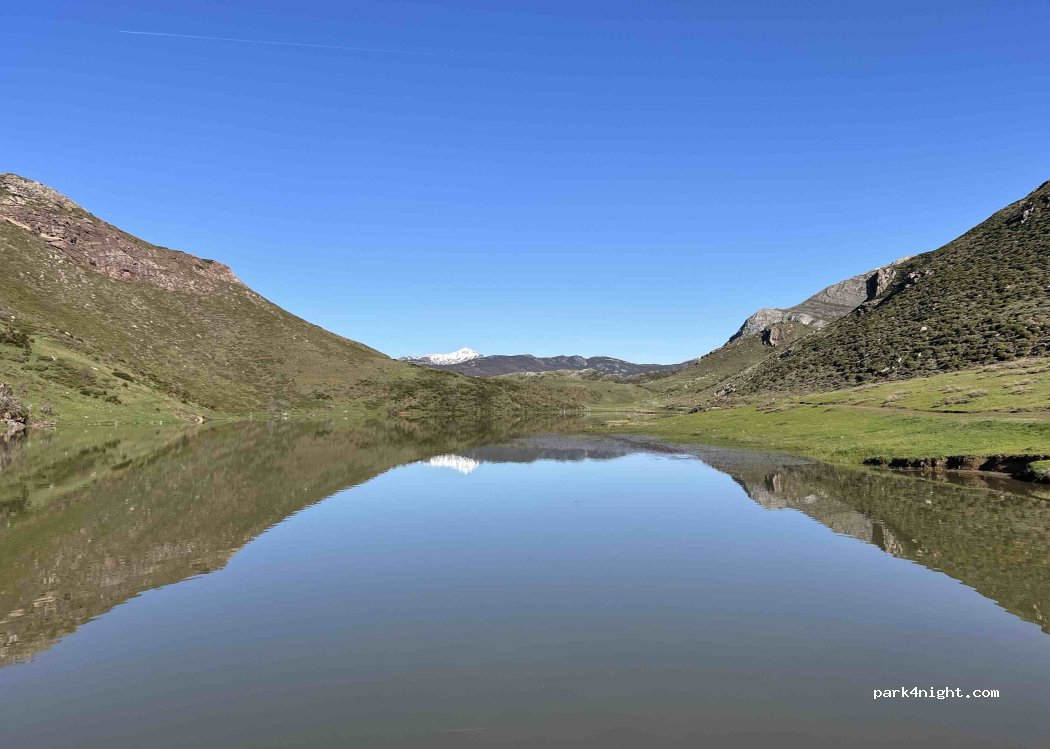 End of the road that leads to Lago Grande de Lago de Babia. There are no services and only room for three or four vans or AC, but it is a paradise, the perfect place to enjoy the mountains. Of course, in summer, because in winter it is all snowy and the road is narrow ...
