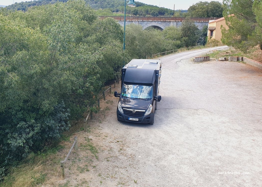 Un bon lloc per aparcar i visitar el poble de Ceret (15 minuts caminant del centre). La part on aparquen les autocaravanes i campers grans, és el pàrquing que queda a la part interior (hi ha un forat a l'asfalt de la baixada, però es pot esquivar bé).