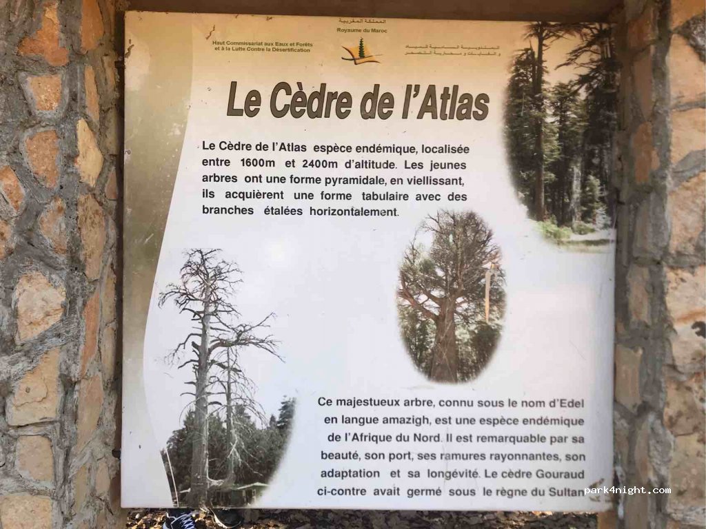 Parking dégueulasse.... on se demande à quoi ça sert de payer pour des gardiens absents la nuit. Le cèdre Gouraud est mort et tagué, les singes sont malheureusement malmenés par les marocains qui arrivent par bus sans respecter les lieux. des familles se disputent les emplacements pour y faire leur tajine. une autre image du Maroc... à éviter. allez plus loin