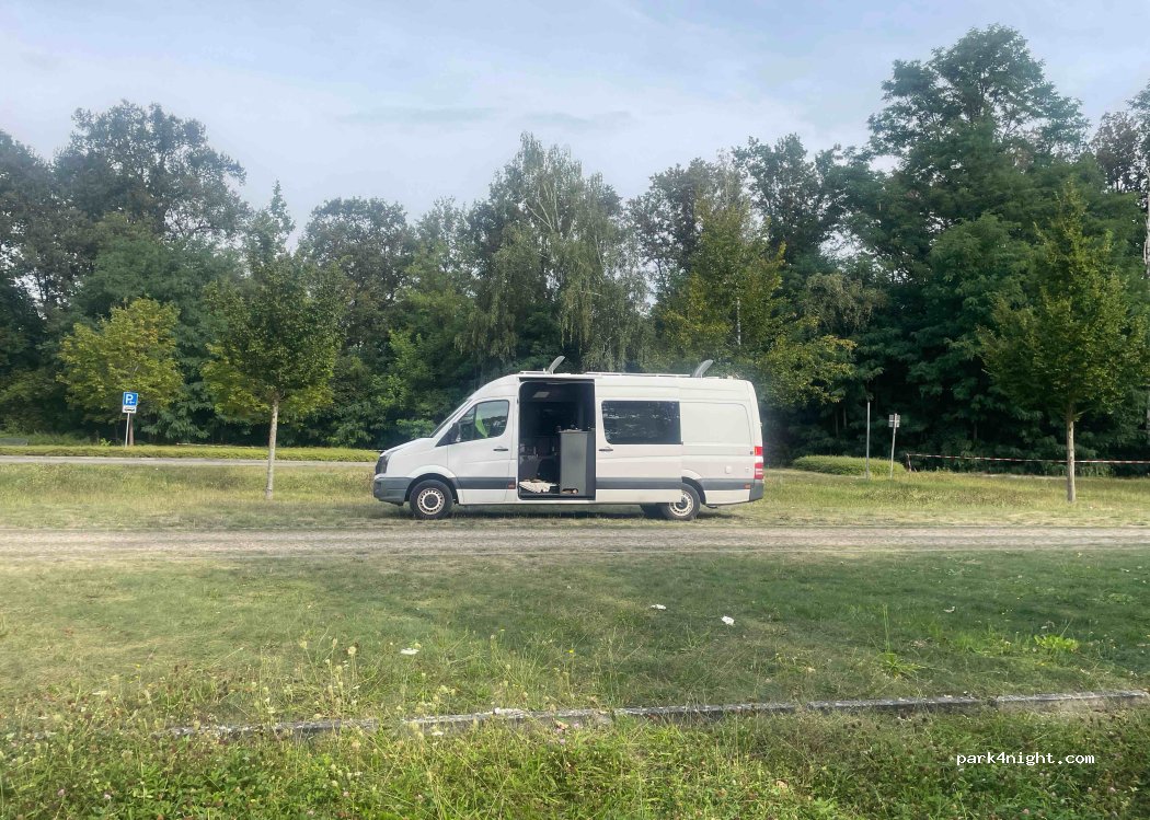 Ausreichend Stellplätze vorhanden, nicht asphaltiert, keine Toiletten oder Strom. Nachts Kanne s am Wochenende zu etwas Verkehr auf dem Parkplatz kommen da es in der Nähe eine Party oä gibt. Der Parkplatz ist die ganze Nacht beleuchtet. Sonst gut für einen Ausflug in den Rosengarten!
