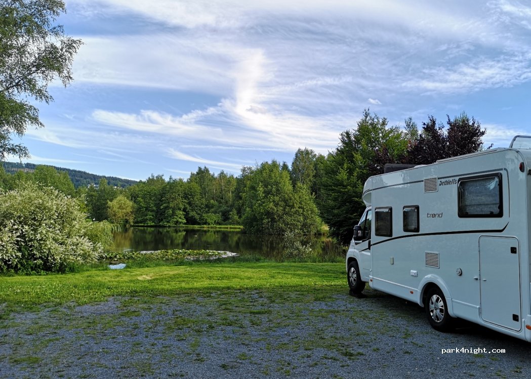 Idyllic parking space at the restaurant with a view of the fish ponds. Electricity as well as supply and disposal available. Uncomplicated operators.