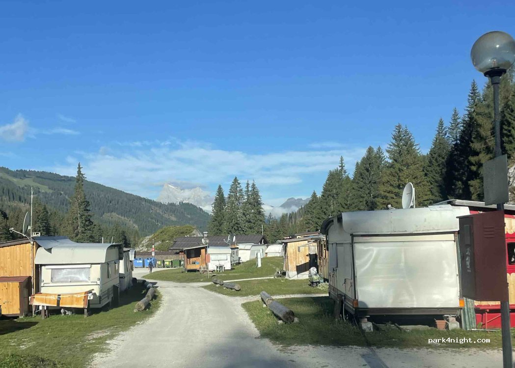 Riesiger Campingplatz mit über 200 Stellplätzen, viele davon mit fest installierten Wohnwagen belegt. Die Rezeption öffnet um 15:30 Uhr. Check-out um 11:00 Uhr. Viele Wasserspender. Duschen, Toiletten, Abwasch, Wäscherei. Preise für Hoch-/Nebensaison siehe Fotos.