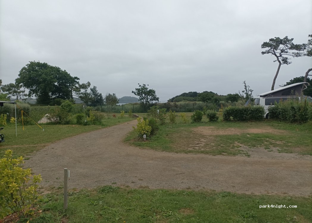 nous avons passé 3 nuits sur un emplacement enherbé prévu normalement pour les groupes en tentes. Très bien pour le prix juste un peu difficile de capter le satellite au travers des hauts peupliers ! bien situé, proche de la ville, nous sommes allés à vélo à l'embarcadère et avons visité Bréhat à pied