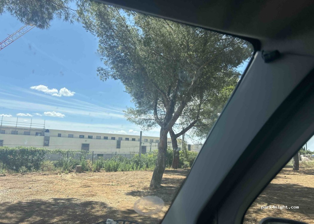 Parking sous des pins route un peu passante en soirée mais plus rien dans la nuit. Voie ferrée derrière mais seulement trois trains entre 8h et 10h
