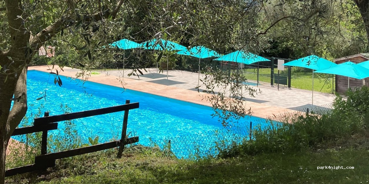 Beaux emplacements herbeux en terrasse sous les oliviers. En retrait de la route. Calme. Aire de services eau propre/eaux grises pour camping car. Vidange eaux noires dans un local dédié des sanitaires du camping. Piscine. Tarifs de camping 22€ pour un Campervan avec 2 personnes. Électricité +5€ par nuit. Une belle étape agréable.