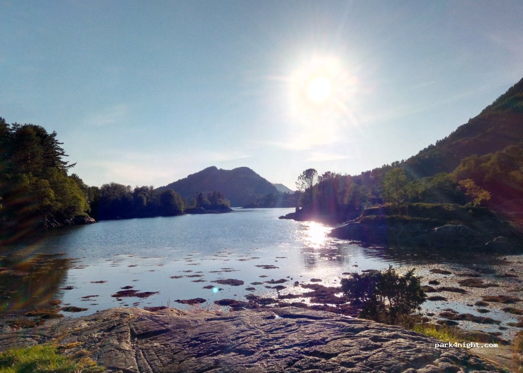 Einfacher Schotter Parkplatz aber zum Übernachten ideal. Saubere Toiletten und Duschen vorhanden. Alles kostenlos. Nur eine warme Dusche kostet 10Kr (Münze, passend). Das Highlight ist aber die Gegend und der angrenzende Vikinger Park. Wer sich traut sollte die Wanderung zum Guløyna utsikt machen. Am Ende liegt ein Gästebuch mit Stiften aus. Wir haben uns eingetragen ;-)