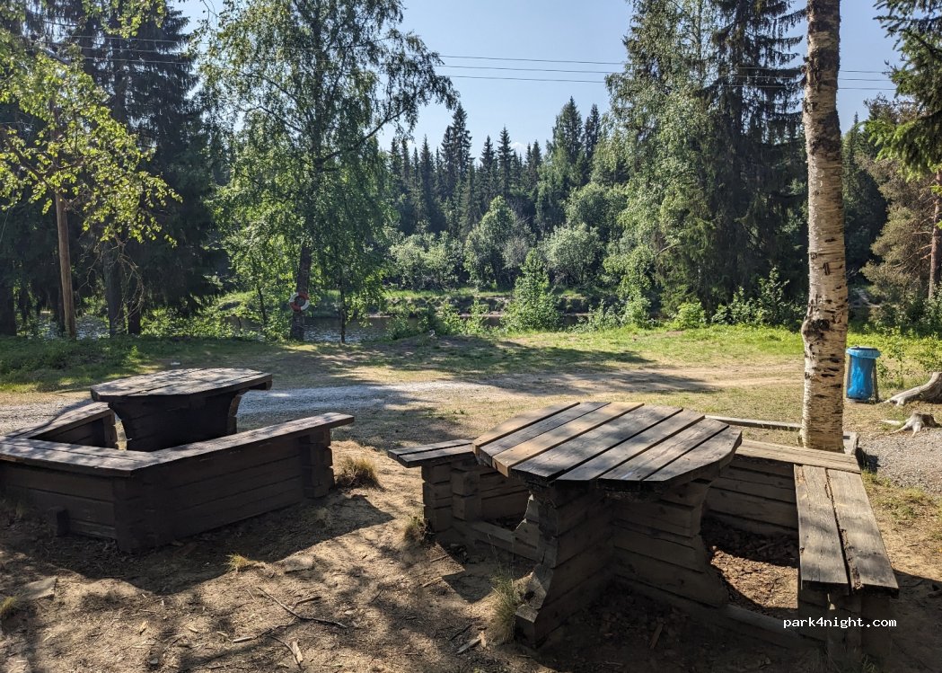 1 km von der Hauptstraße Zugang über eine Schotterstraße - Wenden mit 7m Wohnmobil kein Problem. Direkt in der Kurve eines Flusses, Kanuverleih auf Anruf möglich. Tische, Trockentoilette, Feuerstelle und Feuerholz, kein Service. Teilweise Fliegen und abends viele Mücken.