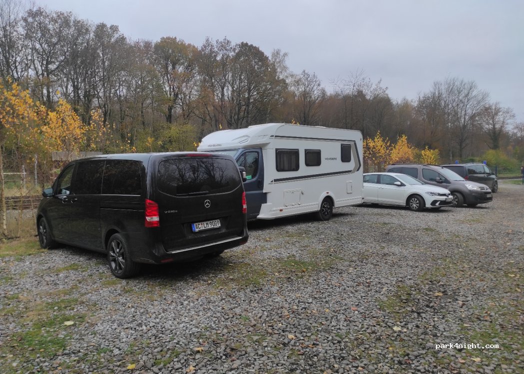 Great view and nice place at Bf. Raeren, access via Langenbend. Unfortunately, the café closes at 8 p.m. Absolutely quiet place to stay. Here you only meet cats and dogs at night. Behind the signal box there is another parking space with a grill hut.