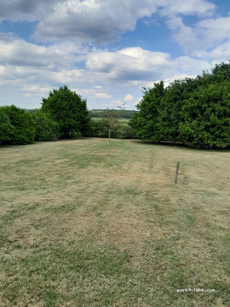 gepflegte grosse Wiese, ich stand als Einzelperson mit dem Minicamper im Schatten am Rand. Für die Toilettennutzung zahlte ich 3 Euro extra, in der Klospülung gab es kein Wasser und Toilettenpapier. Also nicht nutzbar. Es gab einen alten Apfelbaum, der wurmstichige Äpfel abgeworfen hat. Diese waren riesig und nach dem ausschneiden himmlisch lecker. Ein Wein für 12 Euro war nicht mein Geschmack.