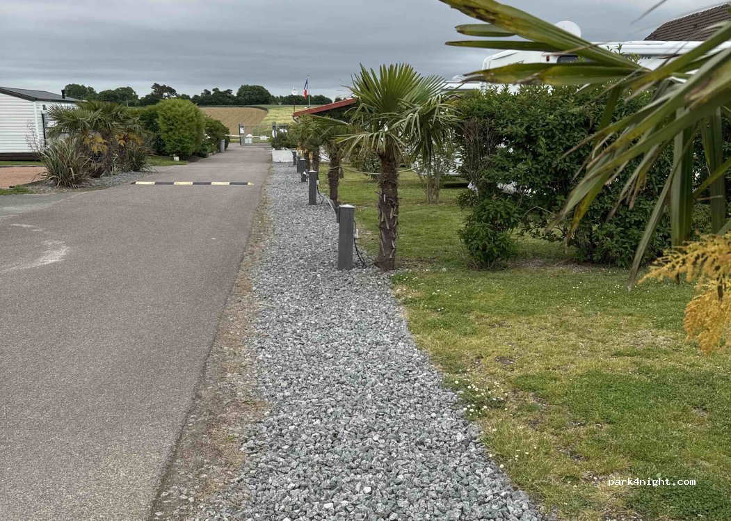 camping à 12 km d etretat.. emplacements camping cars longs.. sur herbe/cailloux délimités par haies ou cordages. près du snack..qui reste ouvert parfois tard. sanitaires très bien mais peu nombreux. sécurisé par un gros portail la nuit. accueil qui manque de chaleur. je recommande pour une ou deux nuits.. tarif un peu élevé.. mais on paye la proximité d etretat.