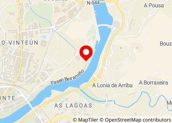 Pegado al río y a la piscina. A 25 minutos andando del centro de Orense. Muy tranquilo.