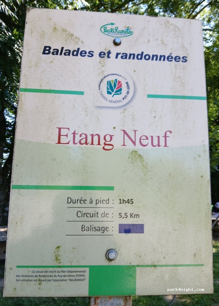 Pour le stationnement de nuit, il y a un petit parking sur la gauche en remontant sur la Departementale. Etang privé donc carte de pêche à la journée (achat boulangerie au Montel de Gelat). BAIGNADE INTERDITE