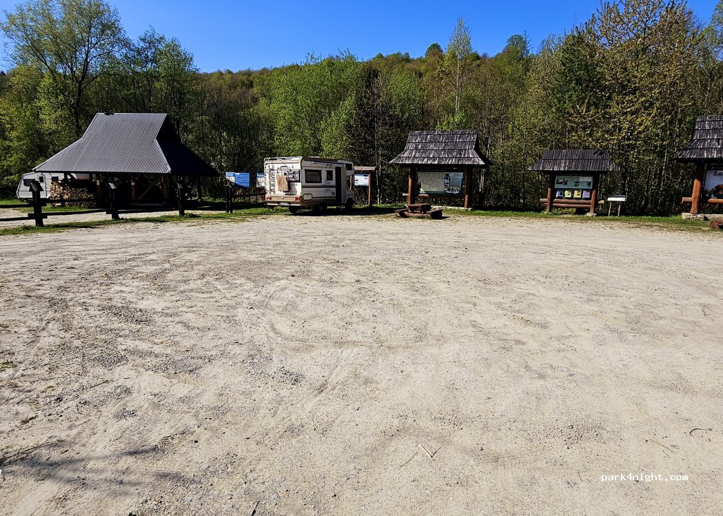 Potwierdzam – ciche spokojne miejsce nad brzegiem Sanu. Zaopatrzone w śmietnik, toaletę oraz drewnianą zadaszoną wiatę i symboliczne ogrodzenie. Przy mało ruchliwej trasie do Zatwarnicy. Miejsce bezpłatne.
