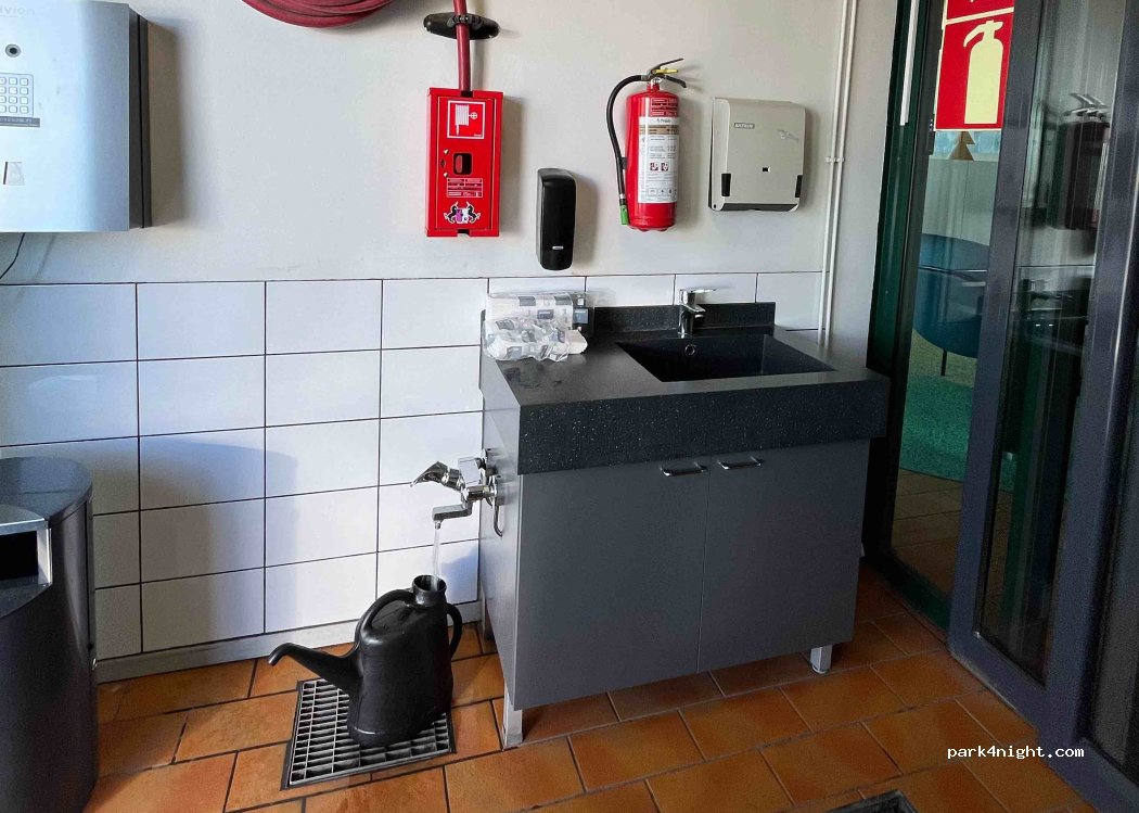 Also: Die Servicestelle befindet sich - von der Tankstelle aus gesehen - genau hinter dem Gebäude. Wir fanden alles sehr sauber vor. In der Kabine hing der lange Haken, mit dem wir sehr einfach den Gullydeckel abheben konnten, um Grauwasser zu entleeren. Der Service ist kostenlos, deshalb haben wir selbstverständlich bei ABC getankt. Vielen Dank an die Betreiber!