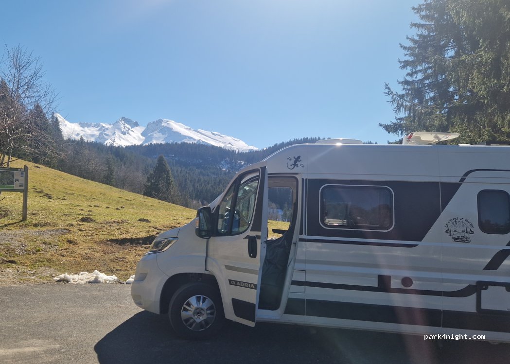 Parkplatz gegenüber der Aiguille de la Clusaz. Kleine steile Straße. Mit dem Wohnmobil erreichbar.
