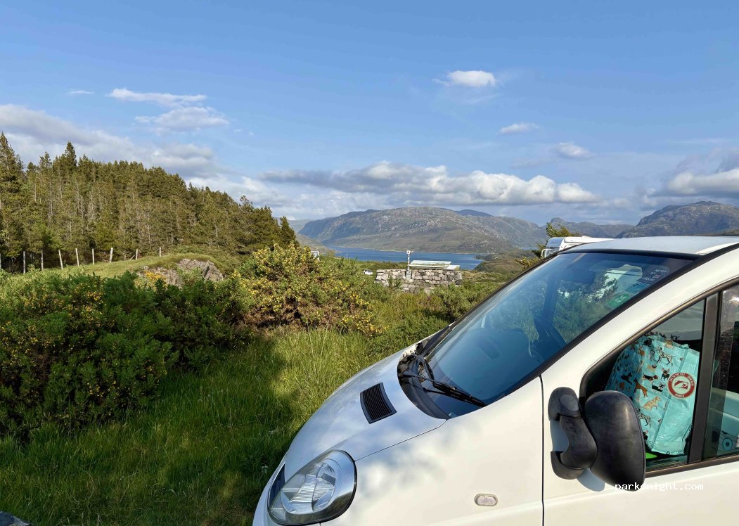 Good park up along the NC500. Very quiet at night and we had good connection on EE and O2. Toilets are a couple of minutes down the road in Kylesku.