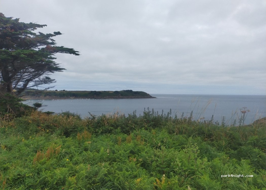 Dormis sur le spot à droite avant le parking. Vue dégagé sur la mer. Super mais légèrement en pente. Accès au sentier sur le littoral pour petite balade. Nous recommandons.