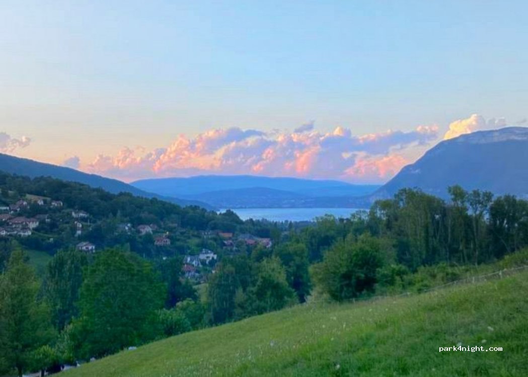 Camping très ombragé avec emplacement du haut spacieux avec une belle vue sur le lac depuis l'emplacement du haut. Cependant il y a deux sanitaires en bas mais pas en haut. la pente est rude. Dommage qu'il y ait une ligne electrique énorme. Pas rassurant en cas d'orage. À 30 min de la station du Semnoz et à 10 min des plages. Un bus à Saint-Jorioz pour Annecy