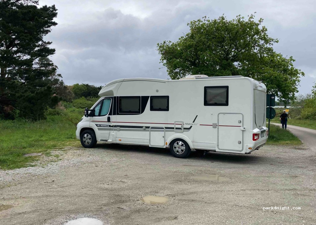 Effectivement parking tranquille malgré des voitures qui passent. Ça permet de visiter le golfe du Morbihan en toute tranquillité. Une balade jusqu'au Port d'Anna ( 7km) . Je recommande vivement.