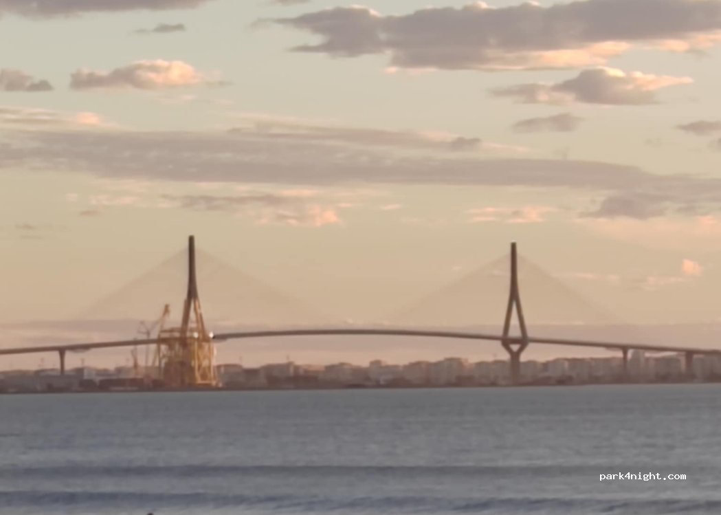 Super Parkplatz! Haben hier ruhig geschlafen, nachdem wir abends mit der Fähre in Cádiz angekommen sind (ca. 20 Minuten nur Fahrt bis hierher). Großer Strand mit Duschen, Promenade mit Restaurants, Supermarkt, Mülltonnen vorhanden. Längslücken für größere Mobile bis 7,5 Meter geeignet. Tagsüber waren selbsternannte Parkwächter da. Ließen uns aber in Ruhe, waren nur im Bereich ganz vorn aktiv.