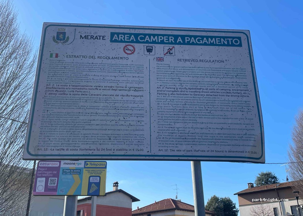 sympa, cette aire qui pour 15 euros nous offre tous les services et l électricité. calme, à 45 mn de Côme. une épicerie - boucherie à recommander