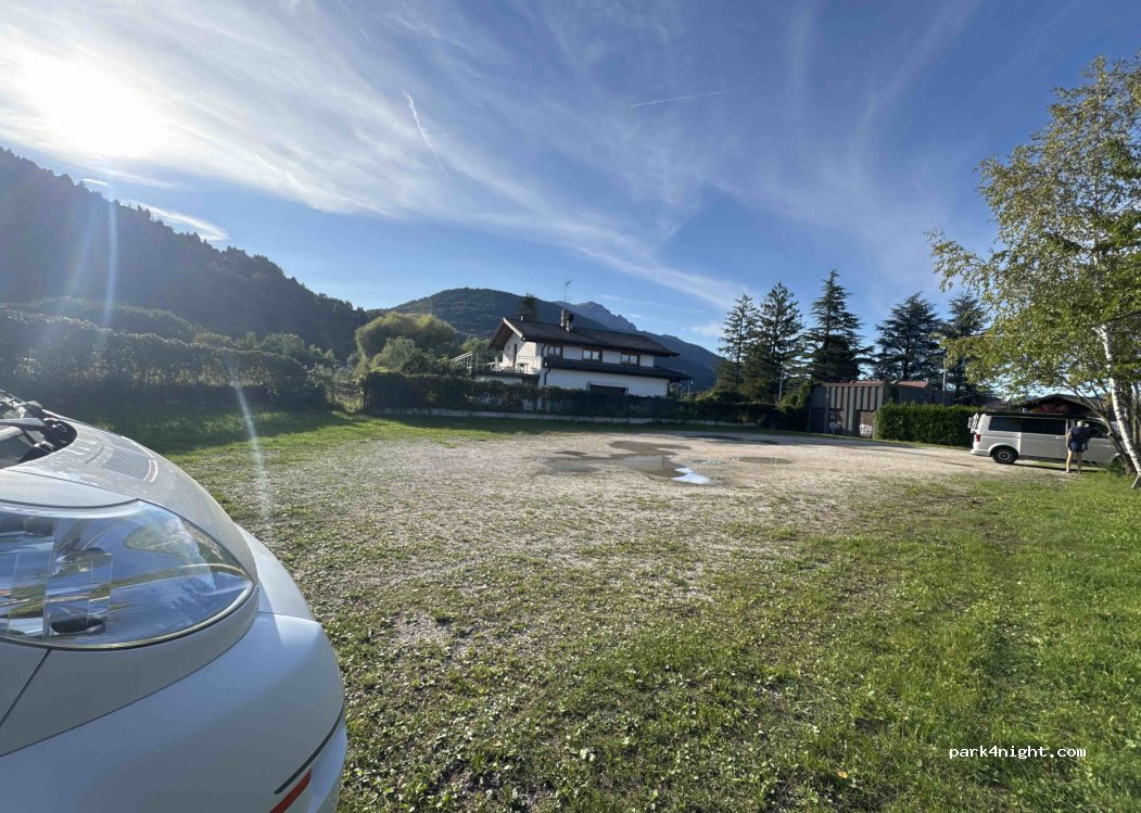 Ottimo parcheggio in sterrato e erba vicino al lago, tranquillo e piuttosto silenzioso per la notte, gratuito dalle 22:00 alle 10:00. La giornata costa € 10,00 Si può pagare con monete o con App .