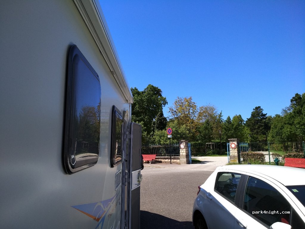 Pas de place... obligés de stationner dans une petite allée voisine.... Comme déjà dit par ailleurs adapté aux vans et petits campings car uniquement. Jeux pour enfants sympas dans le parc.