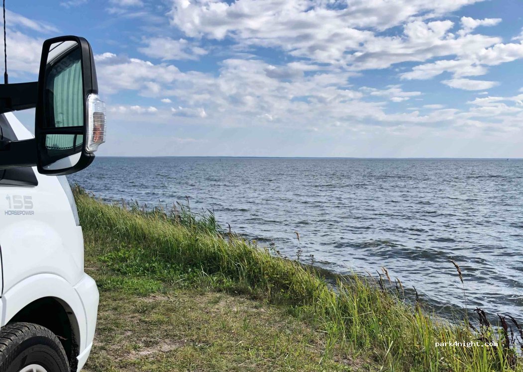 Toller Ort, fantastischer Sonnenunter- und auf der anderen Seite Sonnenaufgang über dem Wasser! Direkt am Achterwasser! 18€ bezahlbar am Ticketautomaten. Der nimmt leider z.Z. nur Münzen. Das Ordnungsamt kontrolliert. 3,70€ Kurtaxe p.P. wollte keiner von uns haben. Leckeren Räucherfisch gibt‘s direkt nebenan.