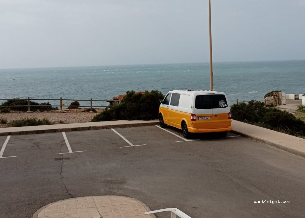La zona de aparcamiento no es gran cosa , pero el acantilado es precioso y tienes acceso directo a la cala . Sitio solo para 5 Justo aquí . Pero por la tarde noche tienes sitio seguro .