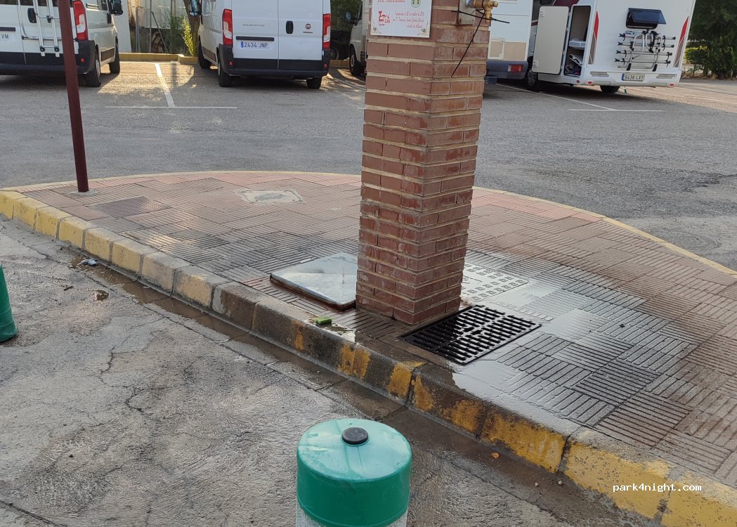 Perfetto per una notte! Acque grigie e nere con rubinetti separati per pulire il WC e riempire il serbatoio dell'acqua. Tutto gratuito e di fronte ad un parco. Vicino c'è anche un Mercadona. Noi ci siamo sentiti sicuri e tranquilli perché c'erano tanti camper. Ci sono anche cestini per la spazzatura e due bagni (non so se funzionano).