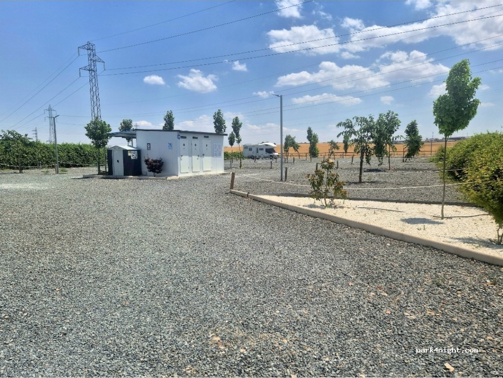 A good, level and clean parking with plenty of gravel. Clean services. After some difficulty in registering, the booking was very easy. We arrived on Sunday - you cannot enter before 12:00. Only 3 others. Very easy to change park places in the account to separate from the others. Good for buses to visit Salamanca. The white noise of the motorway is not avoidable, but we slept with earplugs.