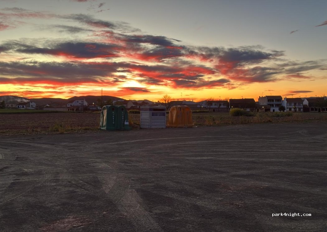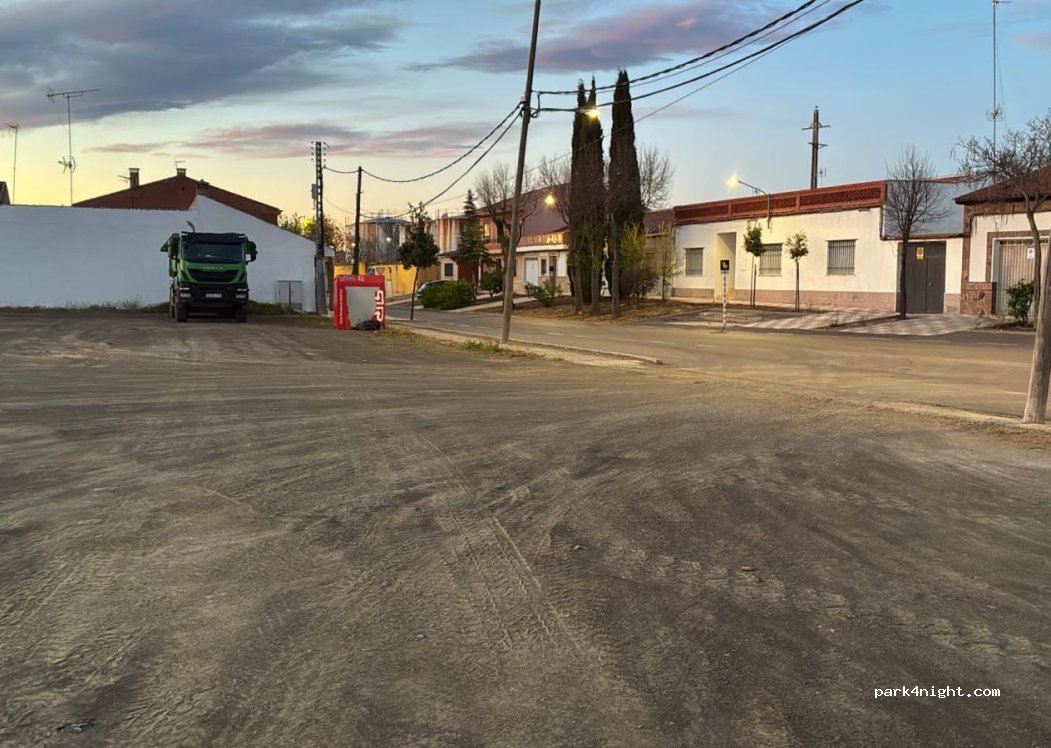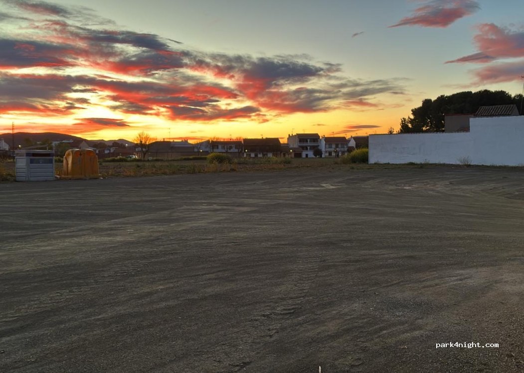 Parking in the town center. Ideal for a stop along the way and a rest. Trash cans, bars, and a supermarket nearby. Very quiet and beautiful sunset views.