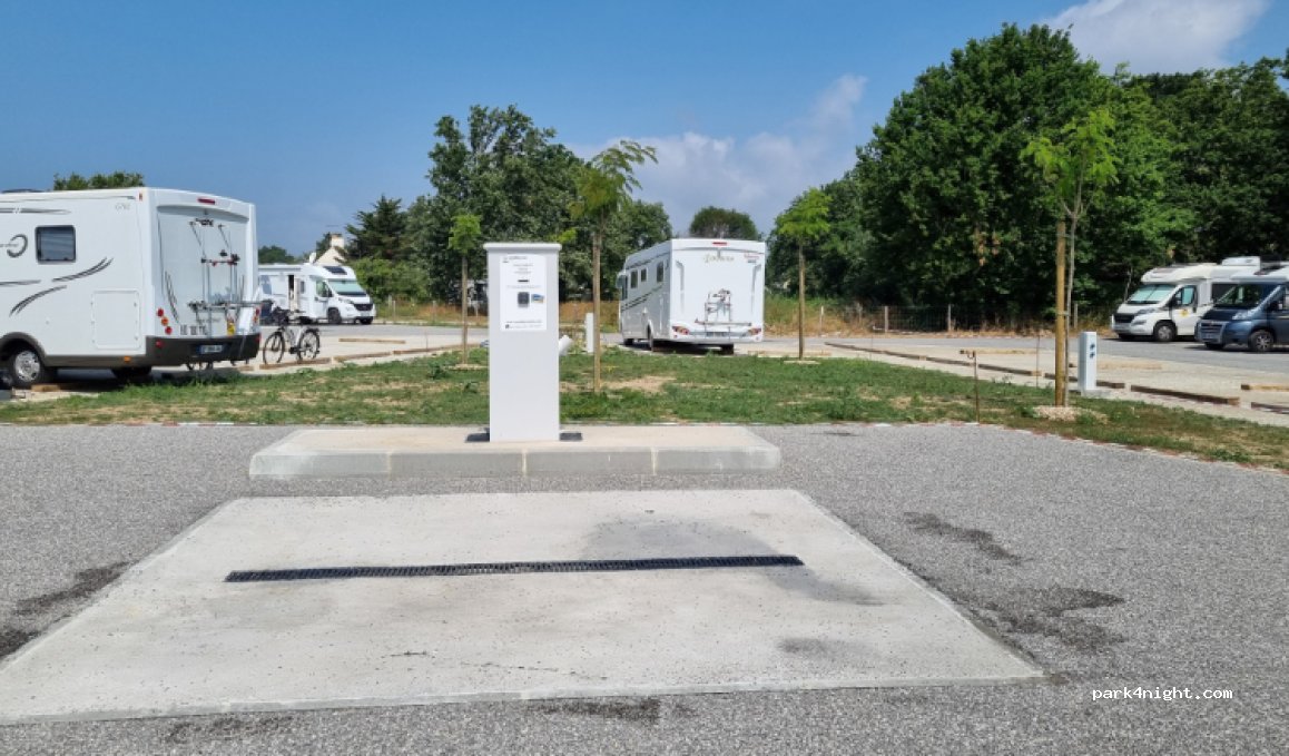 Agréable aire située à proximité de la mer. Différentes pistes cyclables ainsi que circuits pédestres. le tarif indiqué est erroné. il de 15,70€/24h à dater du 1er mai