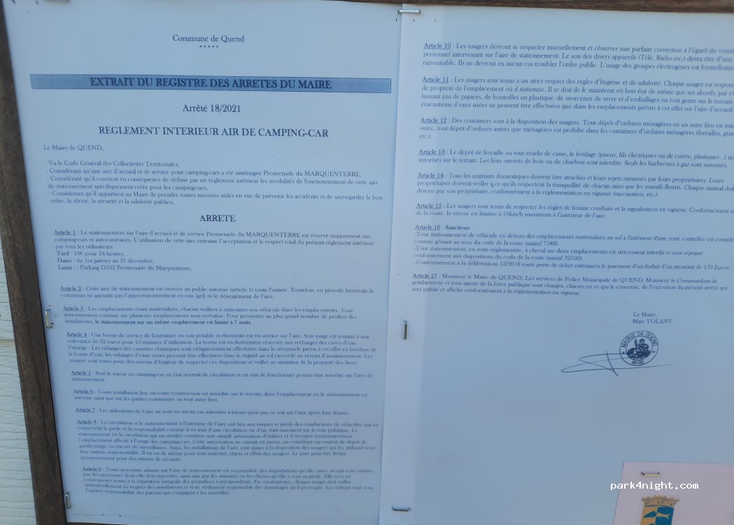 Nous y étions le 28 au soir. Horodateur en panne. Mais pour 7 euros rien à dire, si c'était partout au même prix et aussi bien, ce serait moins désagréable de payer quelques fois.. Un très joli coin et au calme. Merci à la commune. (Christian)